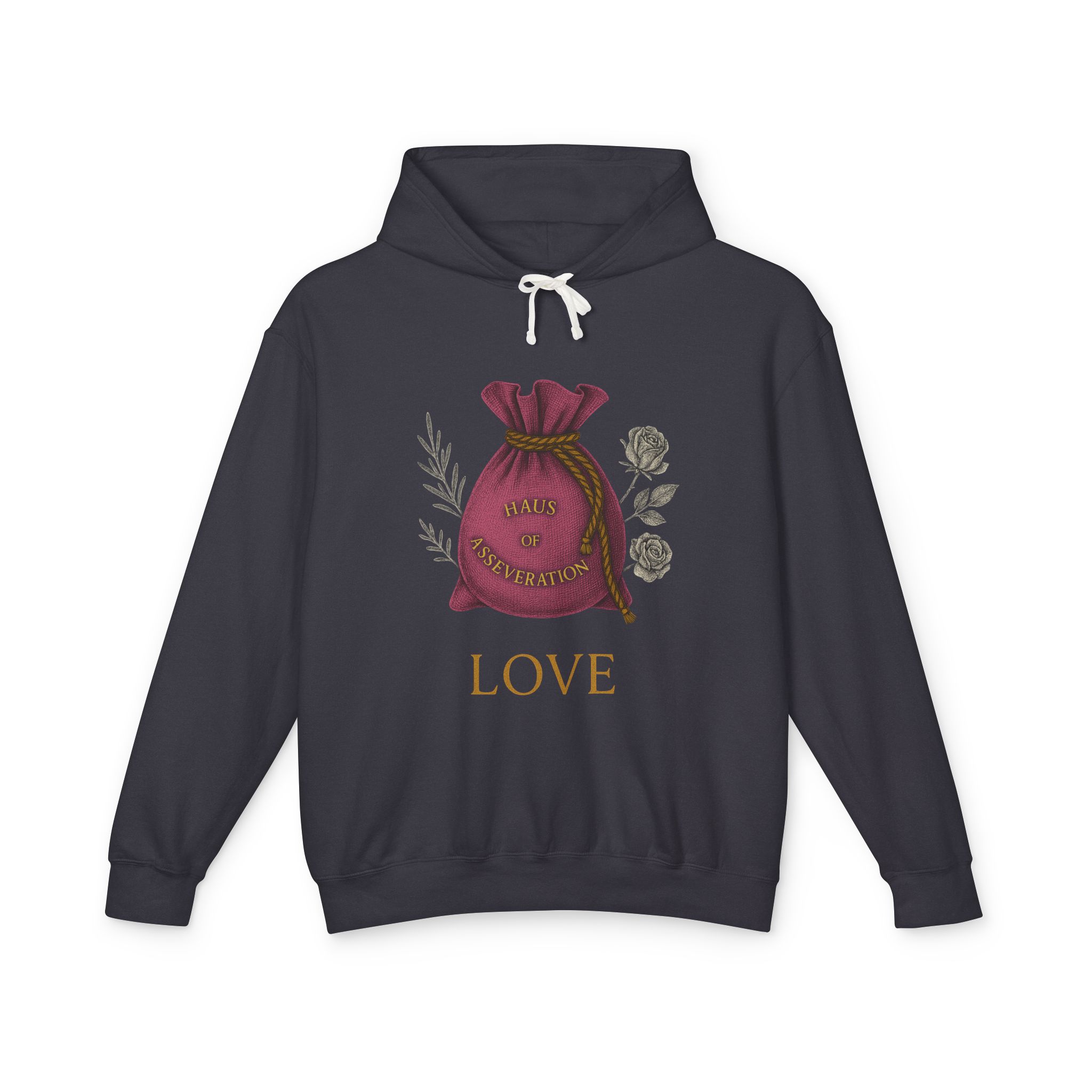 Embody the warmth of connection and the power of devotion with the Love Hoodie from the Haus of Asseveration Mojo Line. This piece celebrates love in all its forms—self-love, romantic love, community love—and serves as a wearable invocation of compassion, tenderness, and unity.