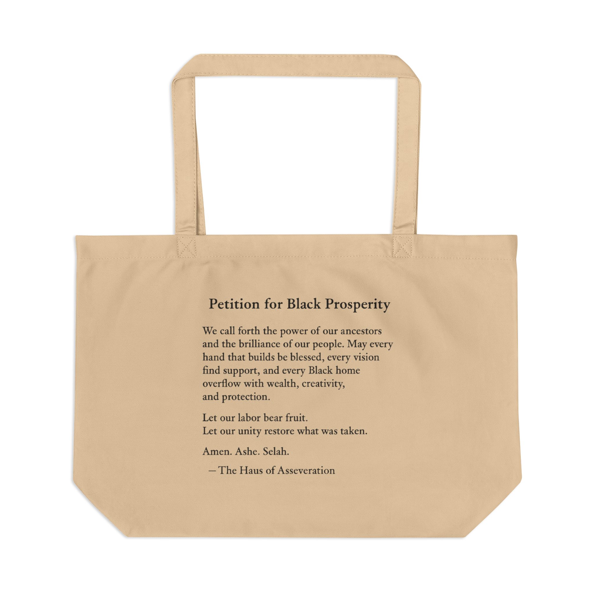 On the back, the “Petition for Black Prosperity” invokes ancestral power — a collective affirmation calling forth wealth, creativity, and protection for the Black community.